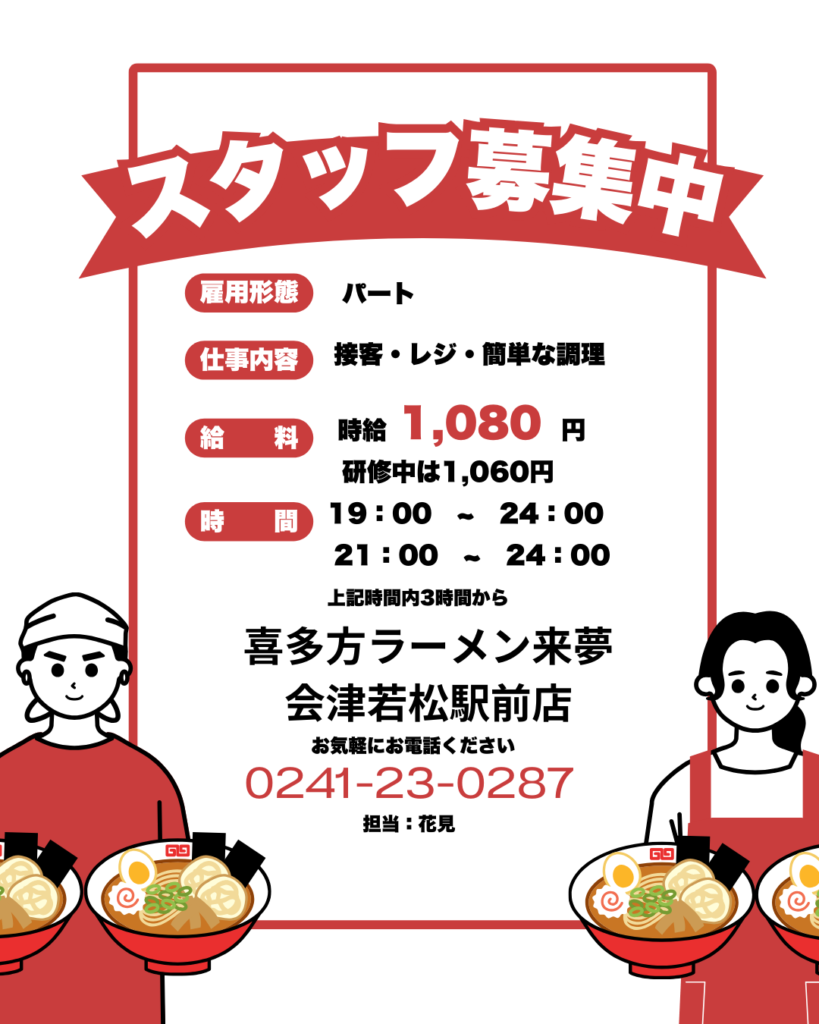会津若松駅前店 パートさん募集中!
